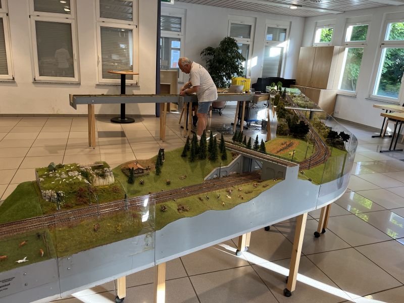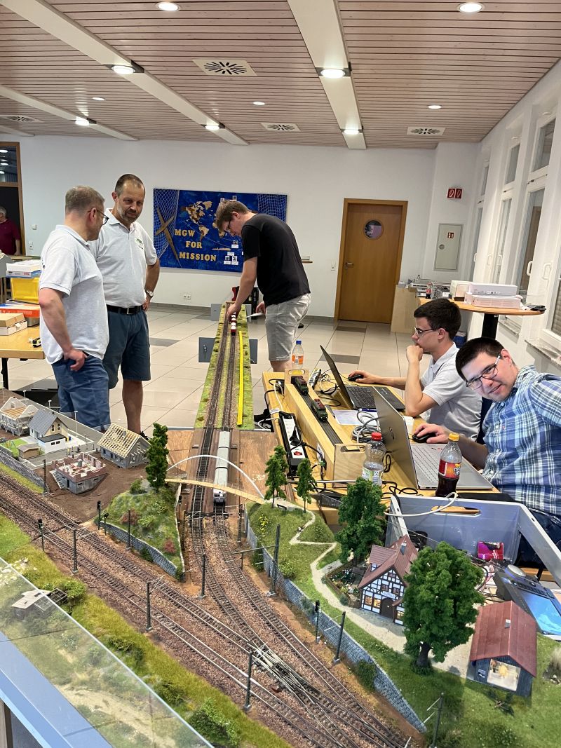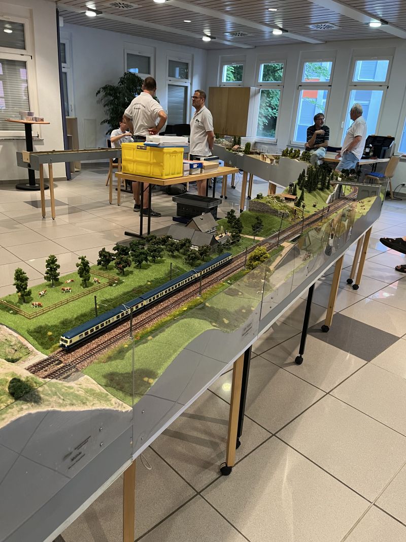 Wir trafen uns an dem Abend wieder, um eine kleine Anlage aufzubauen, unserem Eisenbahnhobby nachzugehen und gemeinsam die Zeit mit Fachsimpeln und den Zügen zuschauen zu genießen.